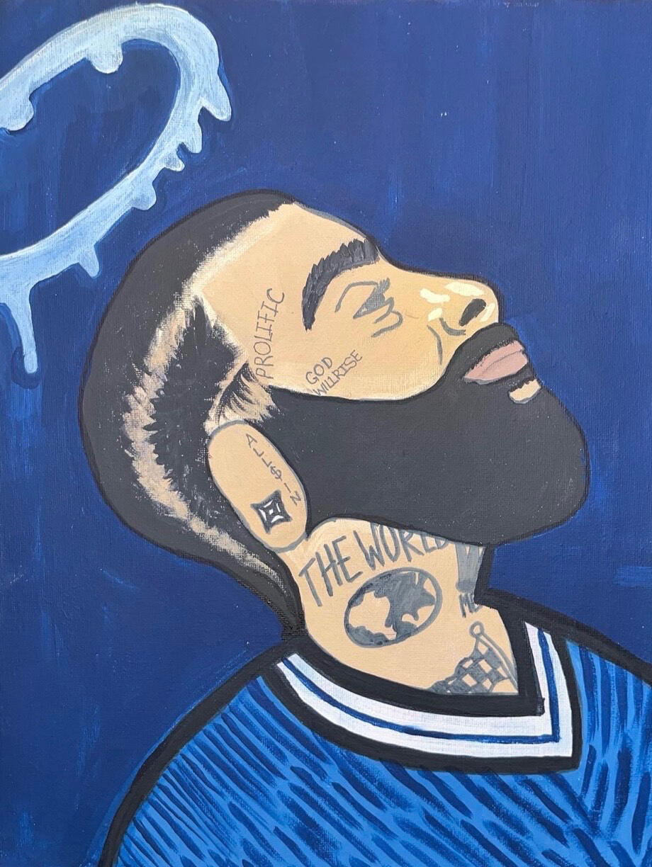 I wanted to create this painting for my aunt for her birthday. I knew she loves nipsey hustle so I was thinking about painting something related to him, I didn't want to actually paint him because I wasn't very good at people at the time, but I decided to give it a shot. I think I was pretty successful.