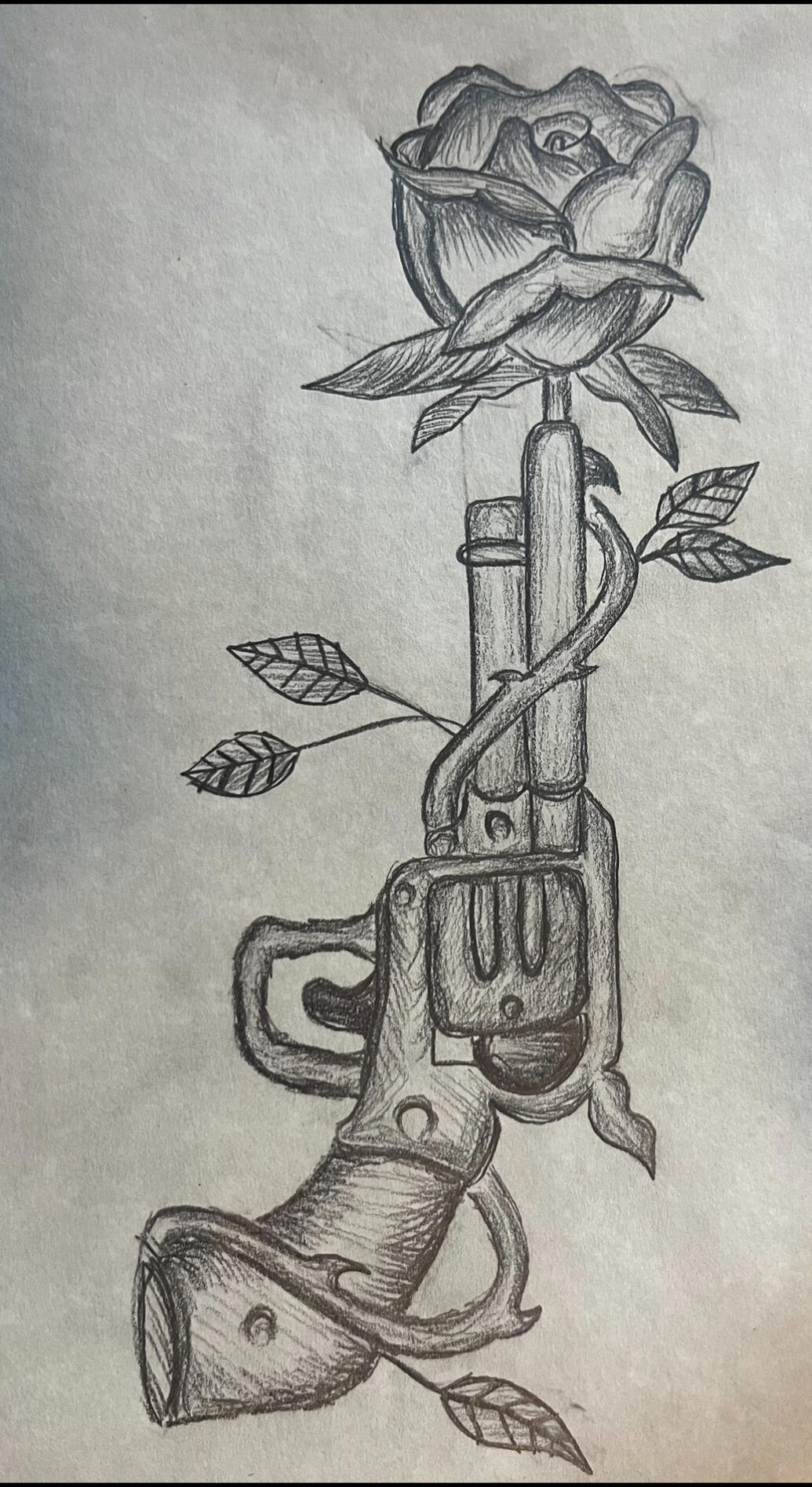 as I explained in one of my other descriptions, I love roses. the way I look at this design I see it telling a story, the bullet from the gun turns into a flower because even if you did something bad it doesn't really mean your a bad person and you can be better and heal.i love the concept of it.