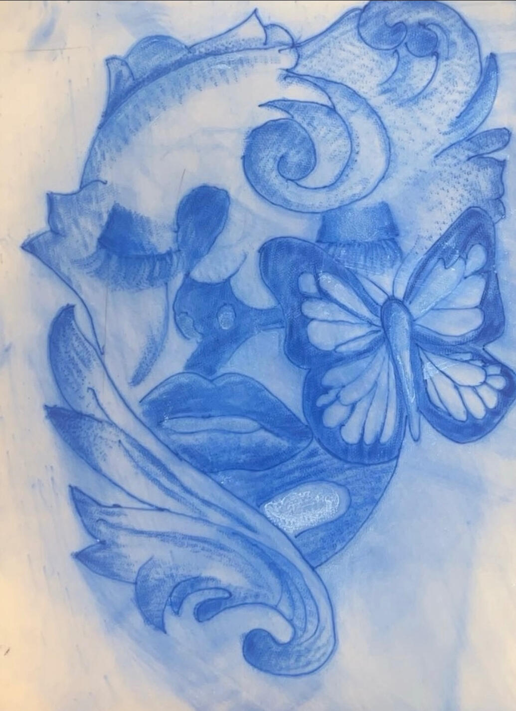 this is another tattoo design I sketched out and created. I was inspired by something similar on Pinterest. I decided to make it my own by making it the color blue. I think it makes it look more calming and heavenly.
